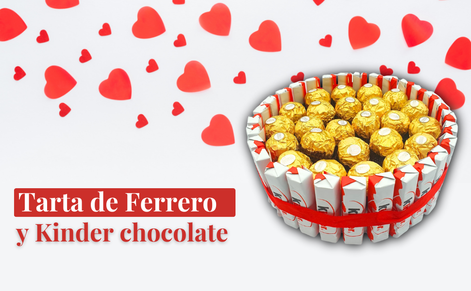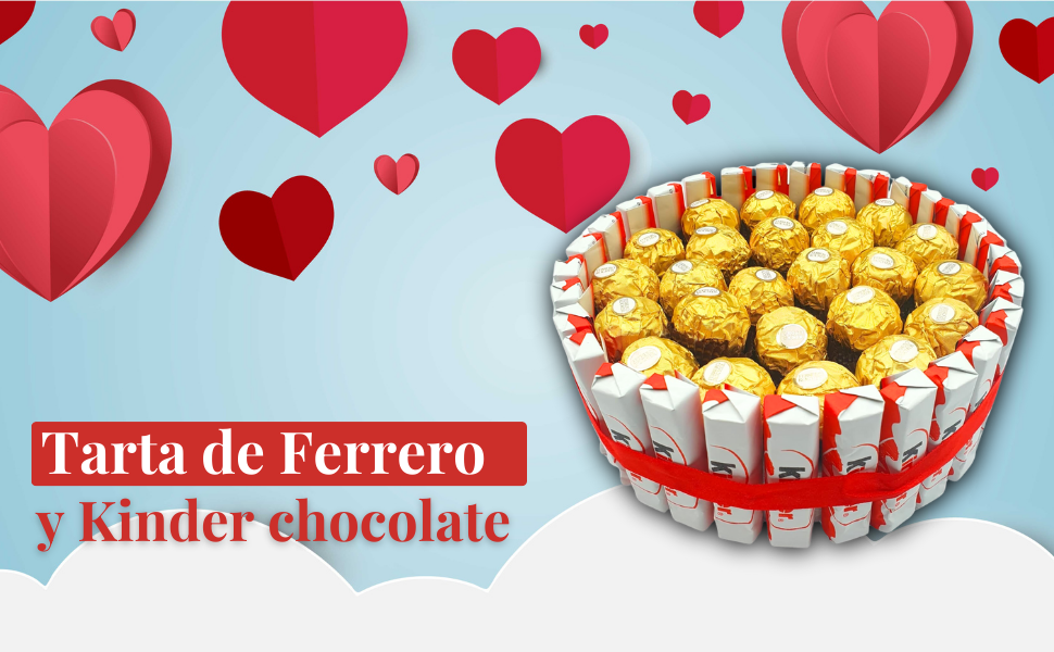Demuestra lo que sientes este san Valentin por esa persona tan especial: Tarta de Ferrero Rocher y Kinder chocolate, ideal para San Valentin. Cada producto está cuidadosamente pensado para garantizar un regalo super original para este 14 de Febrero